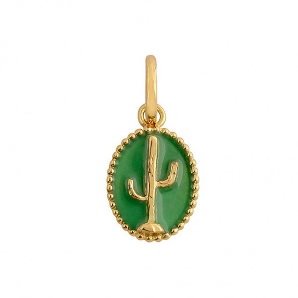 Ce pendentif Cactus de la collection Voyage en or jaune résinée vert est fabriqué dans le sud de la France. C'est un complément parfait.