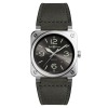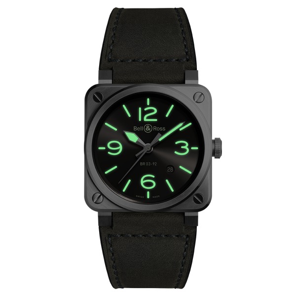 Dernière née de la collection LUM, la BR 03-92 GREY LUM présente des qualités de lisibilité optimale grâce à son traitement Superluminova® C3 destiné à faciliter la lecture de jour comme de nuit. Sur son cadran gris anthracite soleillé au design sans concession, la couleur des aiguilles (heures, minutes) ainsi que des index et des chiffres géants (3, 6, 9, 12) en décalque rappelle l?éclairage des pistes d?atterrissage : une lumière verte intense à la brillance inégalable et connue pour son ultra-phosphorescence.