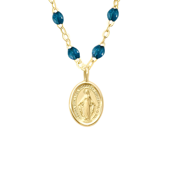 La collection madone est une inspiration colorée de symboles iconiques. Collier madone sur chaîne classique gigi CLOZEAU, or 18 carats et perles de résine.