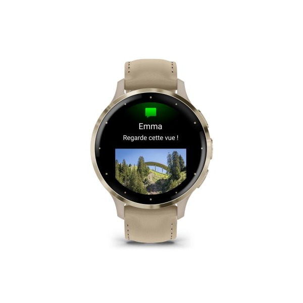 Montre Garmin Venu 3S Soft Gold bracelet cuir lin