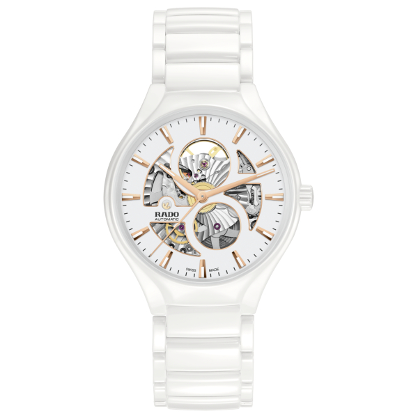 Découvrez l’association parfaite entre excellence en matière de design et maîtrise des matériaux avec la Rado True Round Open Heart. Ce sublime garde-temps au design cœur ouvert vous laisse admirer les mouvements complexes du calibre R734 automatique de Rado, une pure expression de l’art horloger. Doté d’un spiral en Nivachron™ amagnétique, il offre une réserve de marche de 80 heures. Il possède un boîtier monobloc et une couronne en céramique haute technologie blanche polie, ainsi qu’un fond de boîtier en titane dont le verre saphir dévoile le mouvement de la montre. Son cadran soleillé blanc présente des biseaux couleur or rose et une échelle des minutes imprimée en gris. Cette création blanche est proposée avec un bracelet en céramique haute technologie blanche polie avec une boucle déployante triple en titane. Modèle étanche jusqu’à 50 m. La Rado True Round Open Heart est une montre résolument contemporaine avec une intemporalité et un style qui en fait un véritable objet-souvenir.