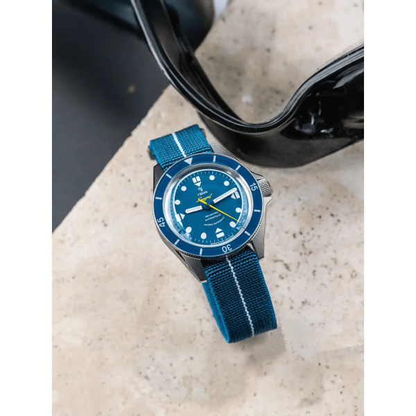 Montre Yema Navygraf Marine Nationale CMM.10 Lunette Bleue Bracelet Parachute