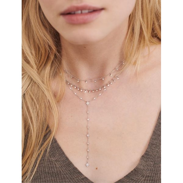 Ce collier marque la période de la Belle époque : son motif central s'inspire des lignes allongées des bijoux du début du 20ème siècle et tombe sensuellement au creux de votre décolleté.