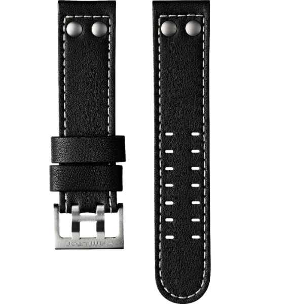 Bracelet Hamilton 22mm Khaki Aviation Cuir Noir