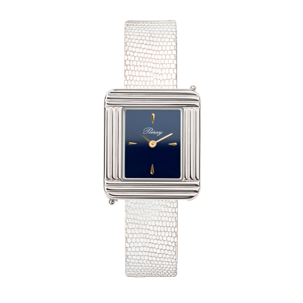 Montre Poiray Ma Première Mini Acier Cadran Bleu Bracelet Chèvre Blanc