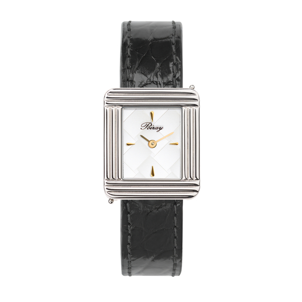 Montre Poiray Ma Première Cadran Blanc Texturé Bracelet Alligator Noir