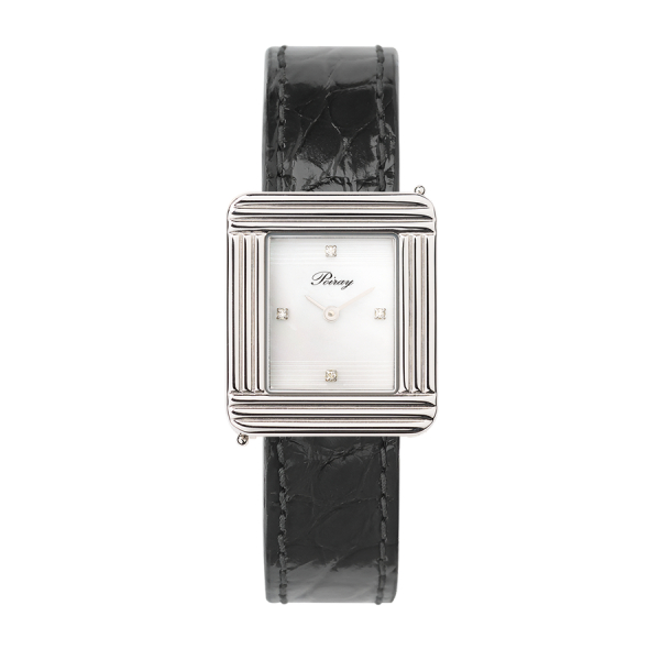 Montre Poiray Ma Première Cadran Blanc Serti Bracelet Alligator Noir