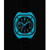 La BR-X5 Blue Lum, équipée d'un mouvement manufacture certifié COSC offre une réserve de marche de 70 heures. Taillé dans un bloc de titane grade 2 traité DLC, le container abritant le mécanisme s’insère entre deux boucliers en LM3D, un composite photoluminescent. Le mouvement et le boîtier bénéficient d’une garantie de 5 ans.