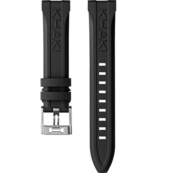 Conçu pour la collection Khaki Navy, ce bracelet en caoutchouc noir est doté d’une boucle ardillon en acier inoxydable.