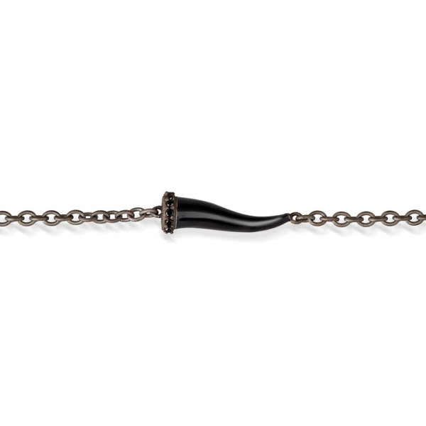 Bracelet homme Lucky Corne en titane serti de 5 diamants noirs. Le bracelet est composé d'une corne porte-bonheur en titane émaillé noir.