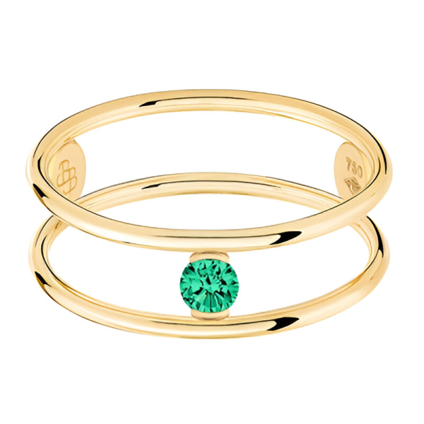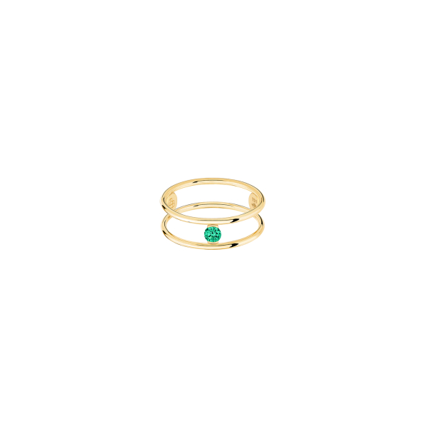 Inspirée des cerceaux de notre enfance, cette bague HULA HOOP met en scène deux anneaux d’or jaune délicatement unis par une émeraude.