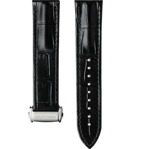 Bracelet Hamilton Jazzmaster 20mm Cuir Noir Boucle Déployante