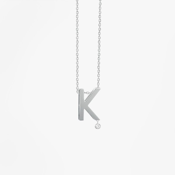 Ce collier en or blanc à porter au quotidien est composé d'une lettre qui glisse librement le long d’une fine chaîne diamantée. Choisissez votre initiale et vous aurez un cadeau parfait.