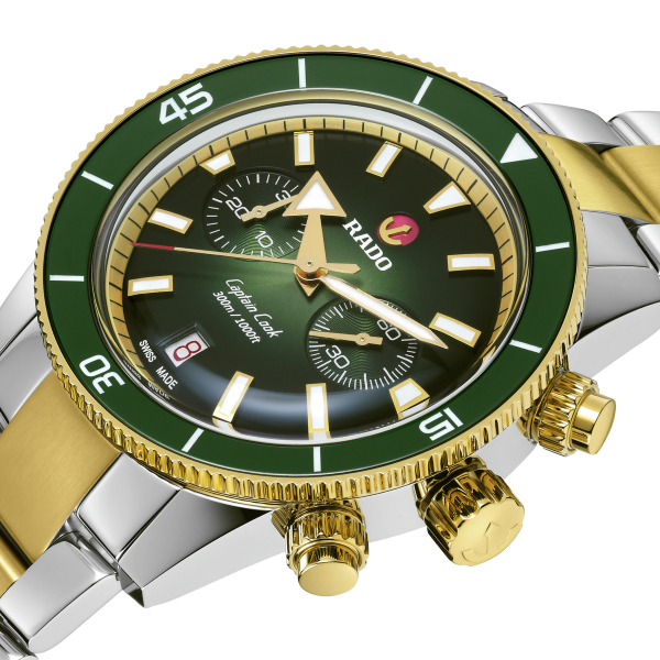 Montre Rado Captain Cook Automatic Chronographe Cadran Vert PVD Jaune