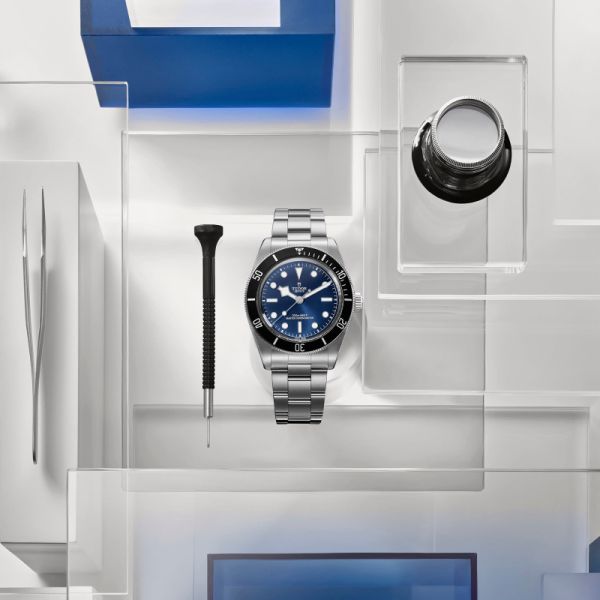 La nouvelle Black Bay 68 est une Black Bay plus grande, la ligne proposant ainsi une variété de tailles de boîtier pour tous les poignets. 1968 est l’année de conception de la signature esthétique de TUDOR : les emblématiques aiguilles dites « Snowflake ». Elles sont entrées au catalogue peu de temps après, en 1969. La Black Bay 68 rend hommage à ce moment important de l’histoire de la marque. Le « bleu TUDOR », autre élément caractéristique de la marque, habille le cadran de la Black Bay 68.