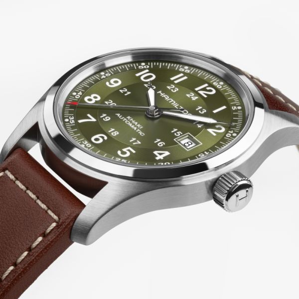 Inspirée de la montre de soldat originale, la Khaki Field Automatic mêle héritage militaire et design contemporain dans un modèle polyvalent conçu pour les pionniers des temps modernes. Associant un cadran soleillé vert kaki à un effet colimaçonné sur le cercle des heures, le cadran reflète la lumière tout en apportant texture et profondeur. Conçu pour l’action et l’aventure, le calibre automatique H-10 exclusif offre jusqu’à 80 heures de réserve de marche, pour une montre qui ne vous laissera pas tomber.