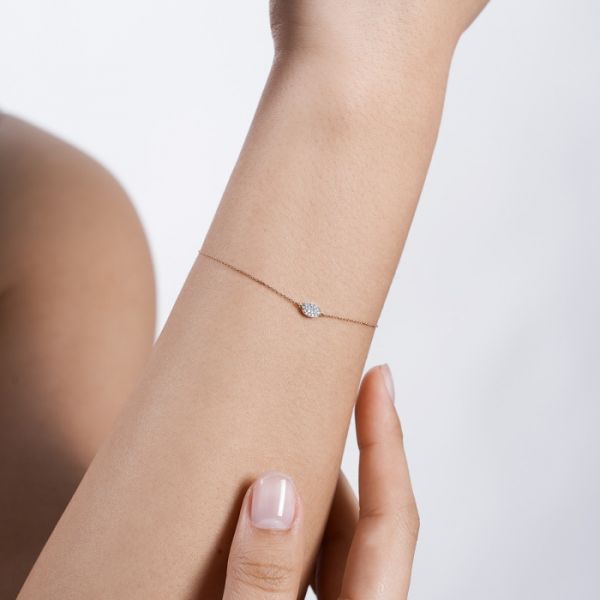 bracelet or rose 18 carats et diamants (0,05 ct), 17 cm dimension du motif : 6X4 mm