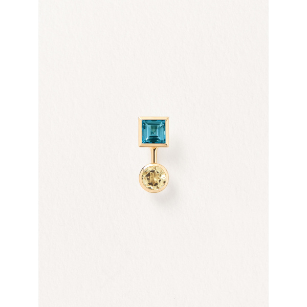 Boucle d'oreille Lolita en or jaune sertie d'une topaze blue london et d'un quartz lemon.