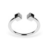La collection Cube de TOM G donne une modernité tout à fait singulière à la bague avec son ouverture symétrique. Cette version sertie de diamants noirs renforce la modernité de la bague.