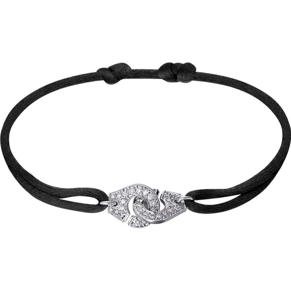 Bracelet Dinh Van Menottes R10 Or Blanc Diamants sur cordon.