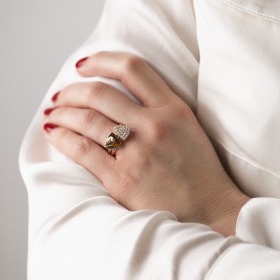 Bague One More Eolo Or Rose et diamants bruns moyen modèle