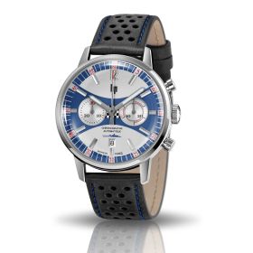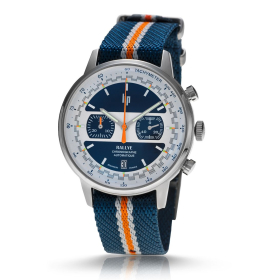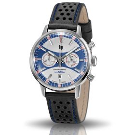 Montre LIP Homme Rallye Quartz Cadran bleu bracelet cuir perforé